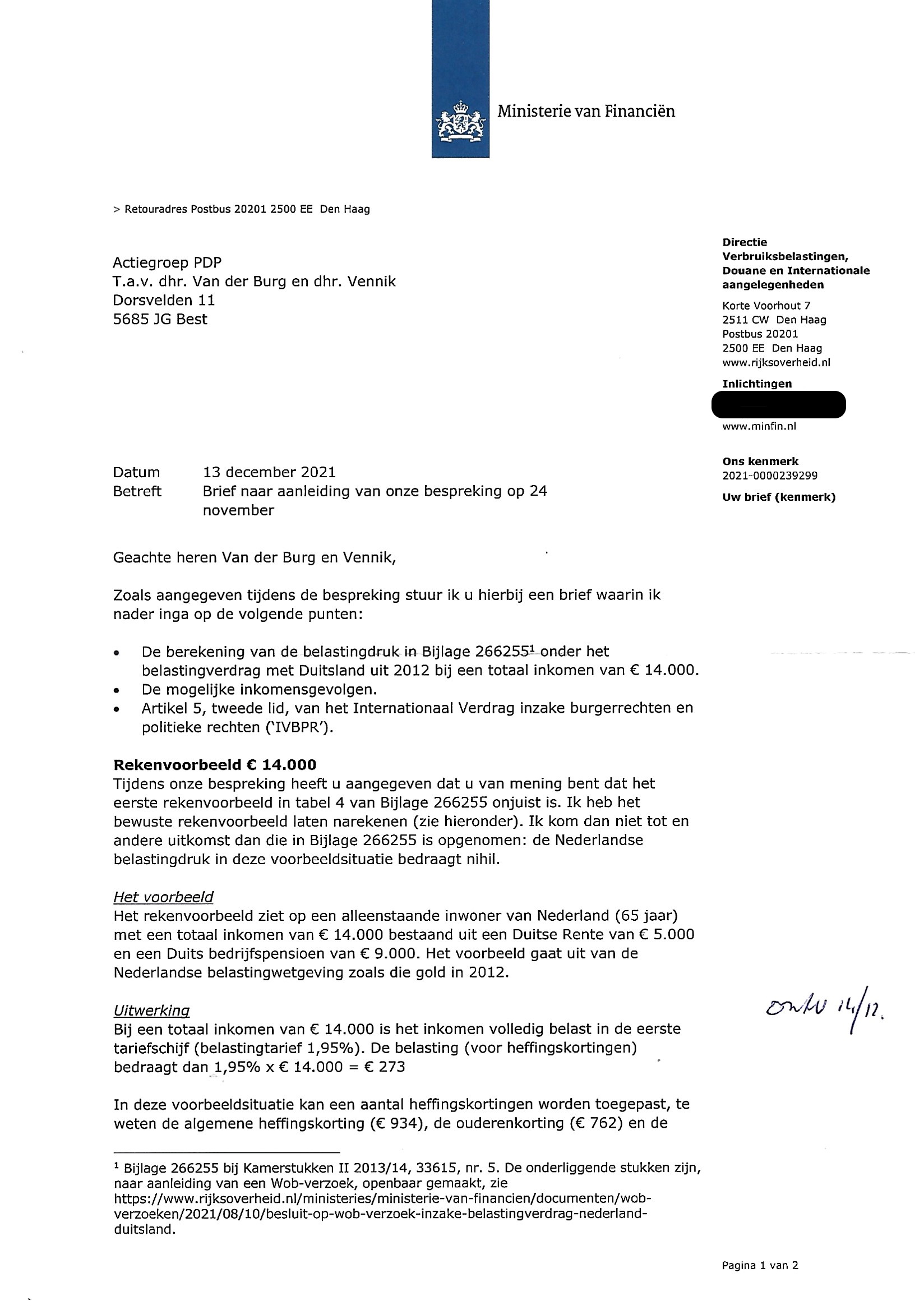 Het officiele antwoord van het Ministerie van financien op de vragen uit het videogesprek